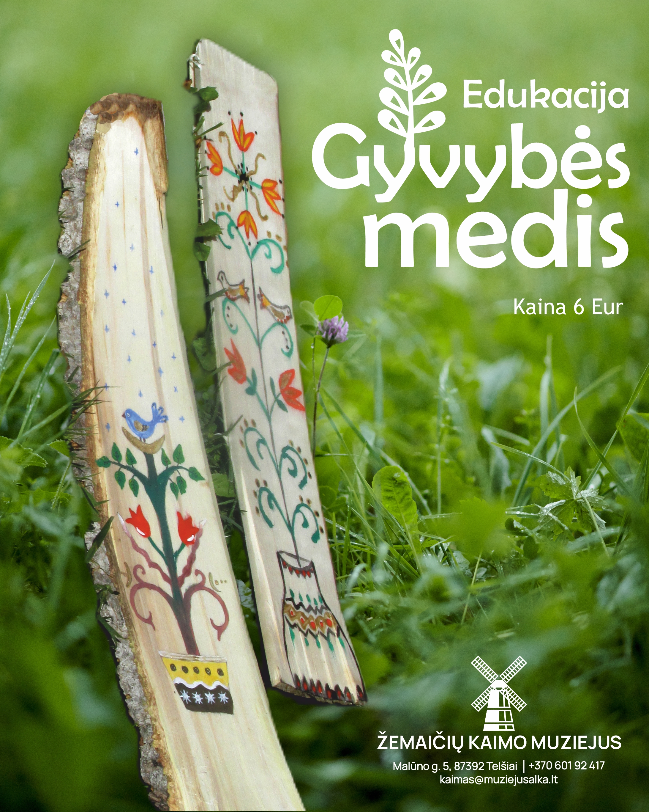 Žemaičių muziejus „Alka“ kviečia į edukaciją, kurioje dalyviai bus supažindinami su XIX a. pab.–XX a. pr. žemaičių sodyba ir protėvių pasaulėjauta, jų puoselėtomis vertybėmis bei tautos tradicijomis. Čia išgirsite apie senąjį medžių kultą ir gyvybės medžio simboliką, pamatysite autentiškus baldus, kraičio skrynias ir kitus daiktus, dekoruotus prasmingais ženklais. Edukacijos metu kiekvienas dalyvis pieš savo įsivaizduojamą gyvybės medį ant drebulės medžio skiedros su magnetu – jį galės parsinešti namo kaip ypatingą prisiminimą. Piešinius lydės žemaitiškos dainos ir pasakojimai apie tai, ką jūsų sukurtas medis atskleidžia apie jus pačius.