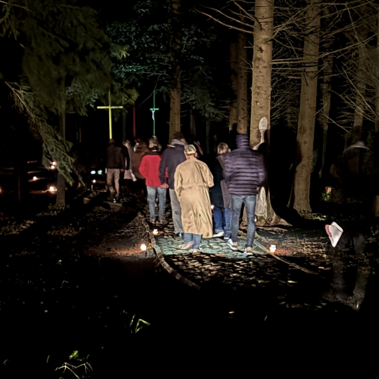 Each year, more organizations join the initiative to honor the martyrs at night. This year, responding to the invitation, Sandra Leliūgaitė, a graduate of the Vilnius Academy of Arts Telšiai Faculty, created a light and sound installation in the Rainiai forest. Through light, sound, and silence, participants symbolically walked through the darkness where humanity had once been destroyed.