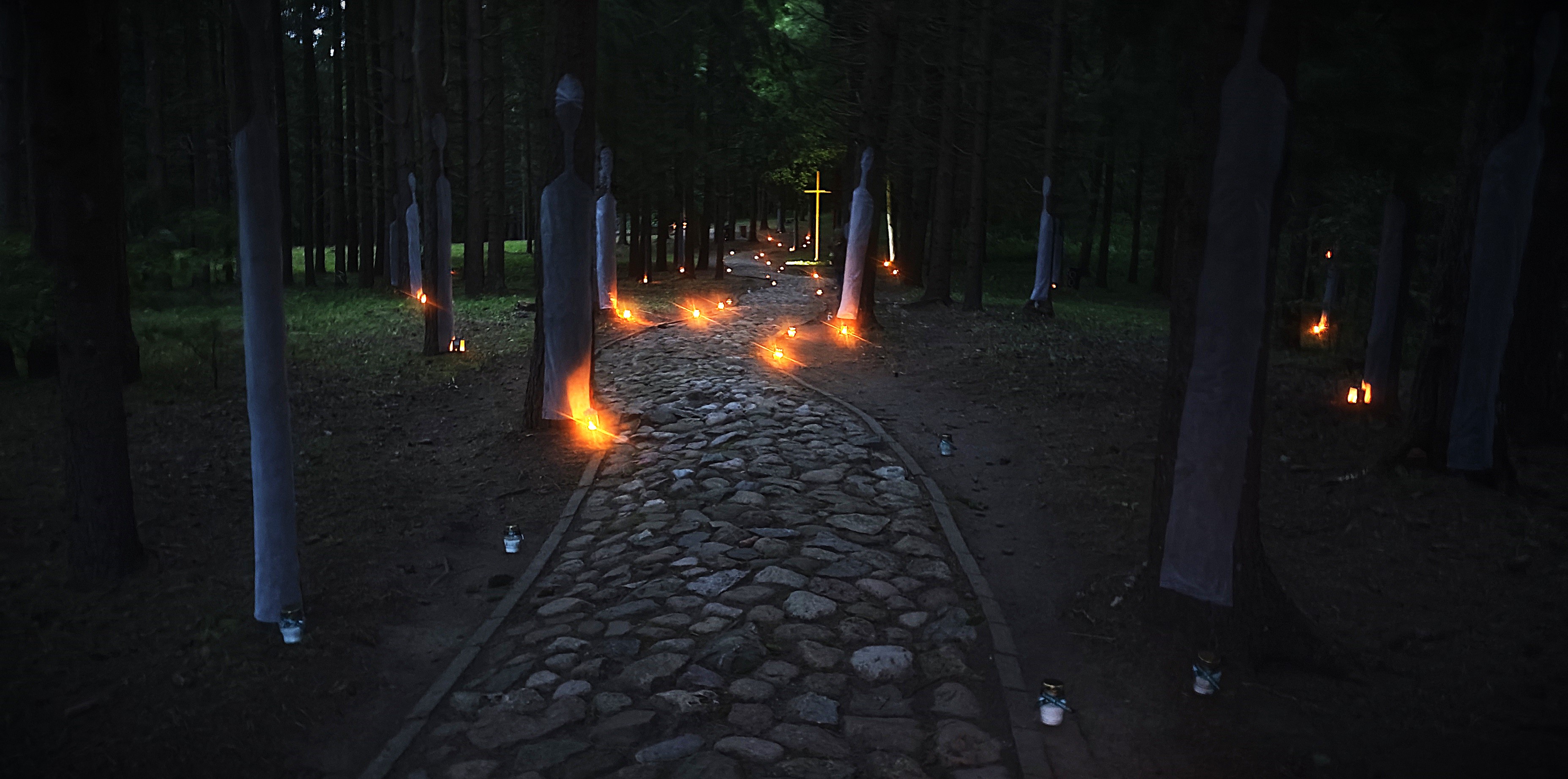 Each year, more organizations join the initiative to honor the martyrs at night. This year, responding to the invitation, Sandra Leliūgaitė, a graduate of the Vilnius Academy of Arts Telšiai Faculty, created a light and sound installation in the Rainiai forest. Through light, sound, and silence, participants symbolically walked through the darkness where humanity had once been destroyed.