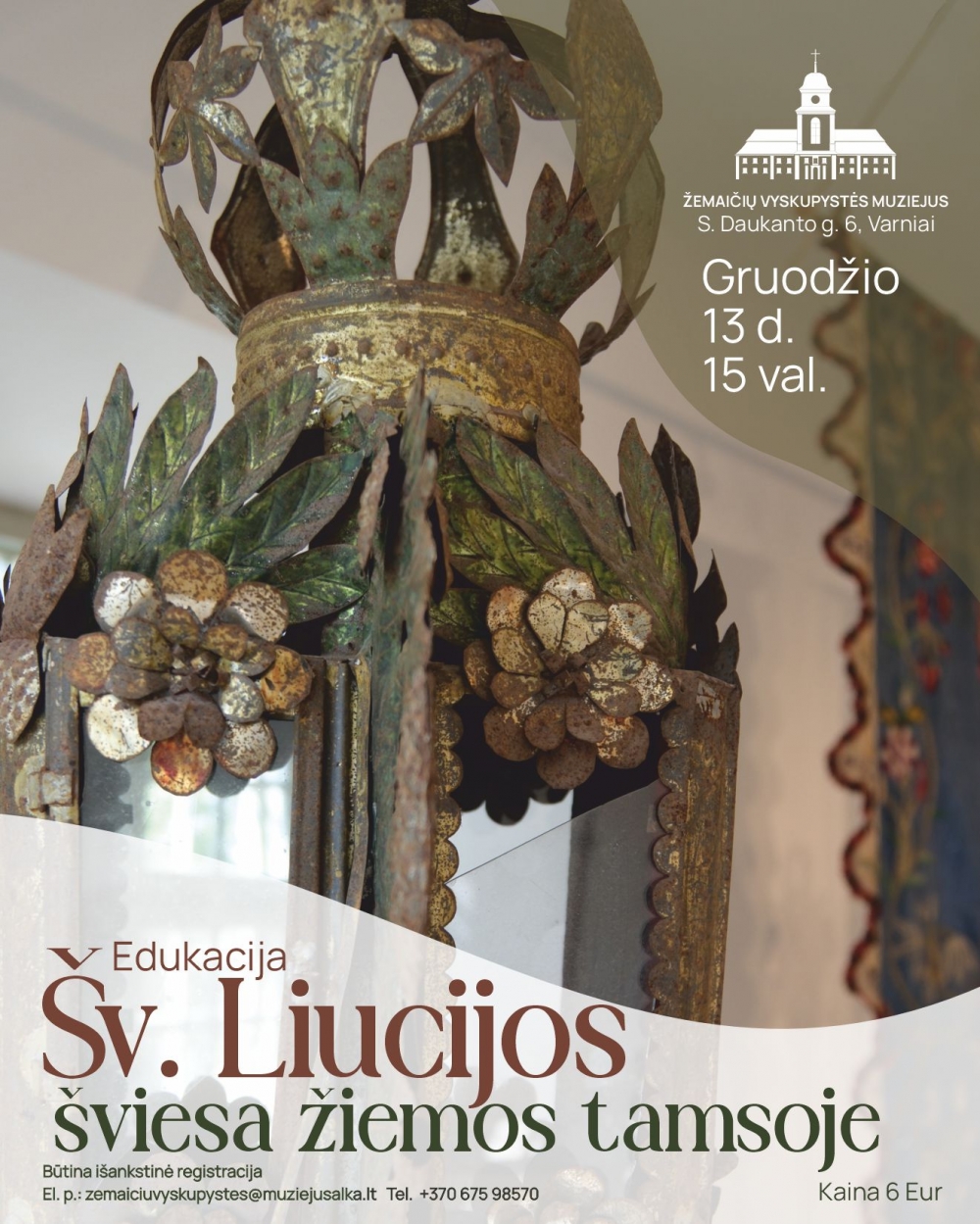 Būtina išankstinė registracija (dalyvių skaičius ribotas) el. p. zemaiciuvyskupystes@muziejusalka.lt, tel. +37067598570. Kaina – 6 Eur.