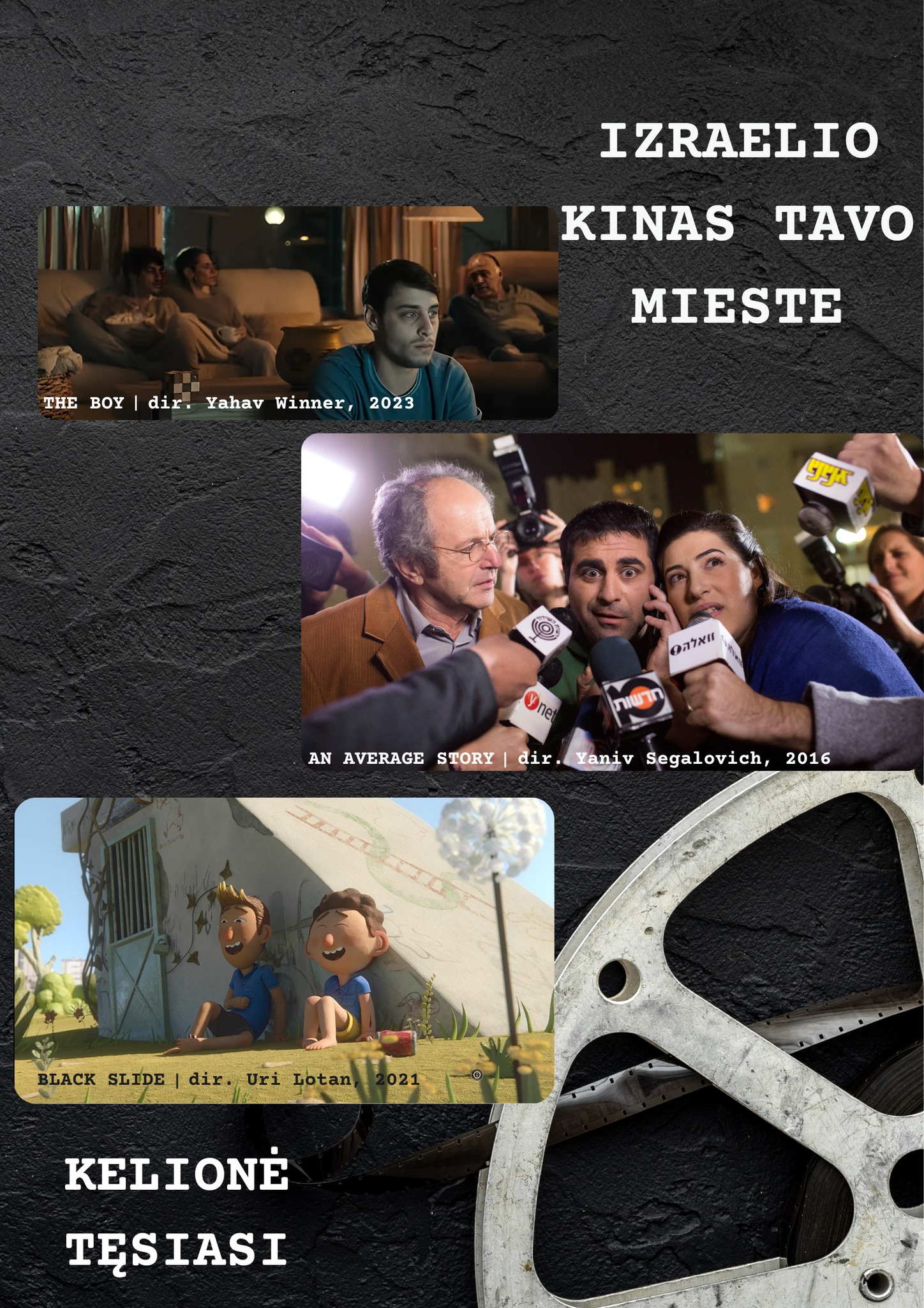 Projekto „Izraelio kinas tavo mieste" filmai rodomi nemokamai, hebrajų kalba su lietuviškais subtitrais.