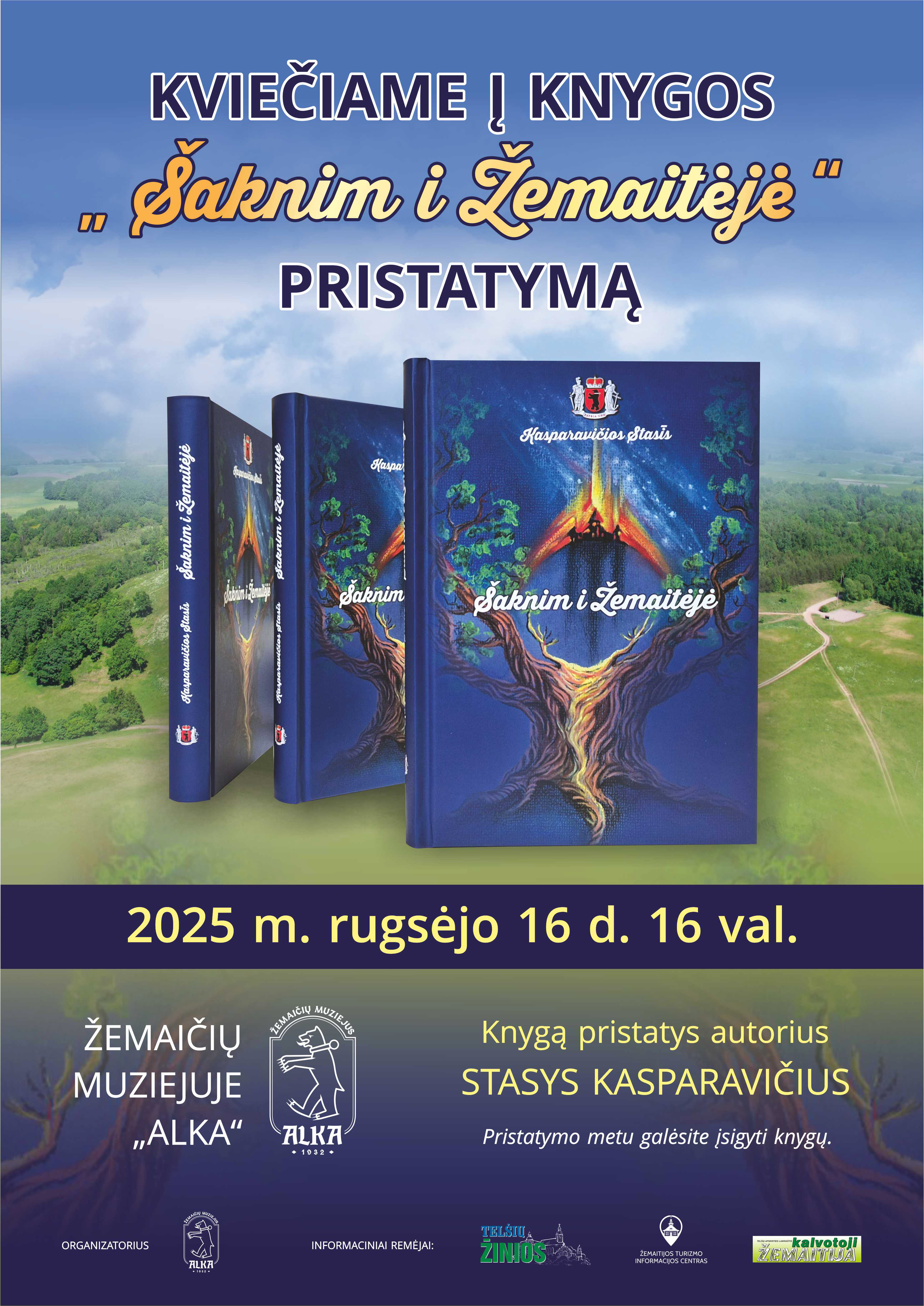 Ilgametis Žemaičių muziejaus „Alka“ direktorius, daugelį metų telkęs Žemaičių kultūros draugiją ir savo gyvenimą paskyręs Žemaitijos istorijos bei tapatybės išsaugojimui, Stasys Kasparavičius pristato naują knygą „Šaknim i Žemaitėjė“. Tai jau trečiasis autoriaus leidinys, kartu su ankstesniaisiais – „Žemaitija – paslapčių žemė“ bei „Žemaitē īr“ – sudarantis savitą žemaitišką trilogiją.