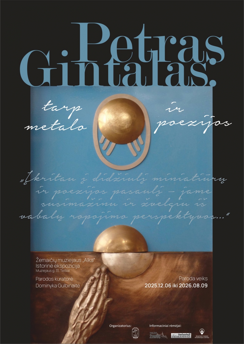 Retrospektyvinė vieno ryškiausių Lietuvos medalio meno kūrėjo Petro Gintalo paroda „Petras Gintalas: tarp meno ir poezijos“, atveria daugiau kaip kelių dešimtmečių dailininko kūrybos horizontus. Menininko darbai – erdvė, kurioje tvirtas metalas susitinka su jautria vidine pasaulėjauta, mažoje formoje talpinančia daugiaklodžius pasakojimus. Kiekvienas kūrinys – tai savita miniatiūrinė poema, kurioje medžiaga tampa žodžiu, faktūra – jausmo atspindžiu, o reljefas – išraiškingu autoriaus mąstymo ritmu. Parodoje eksponuojami darbai leidžia atsekti menininko kūrybos raidą: nuo ankstyvųjų, tradiciją reflektuojančių kompozicijų iki konceptualesnių, simboliais ir metaforomis prisodrintų vėlyvųjų ciklų.