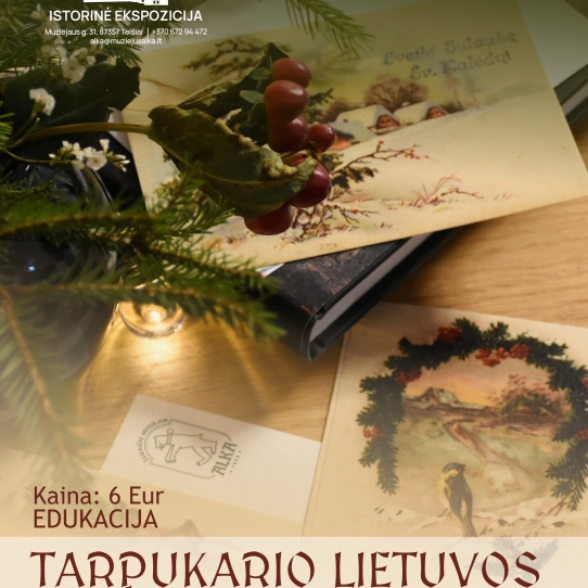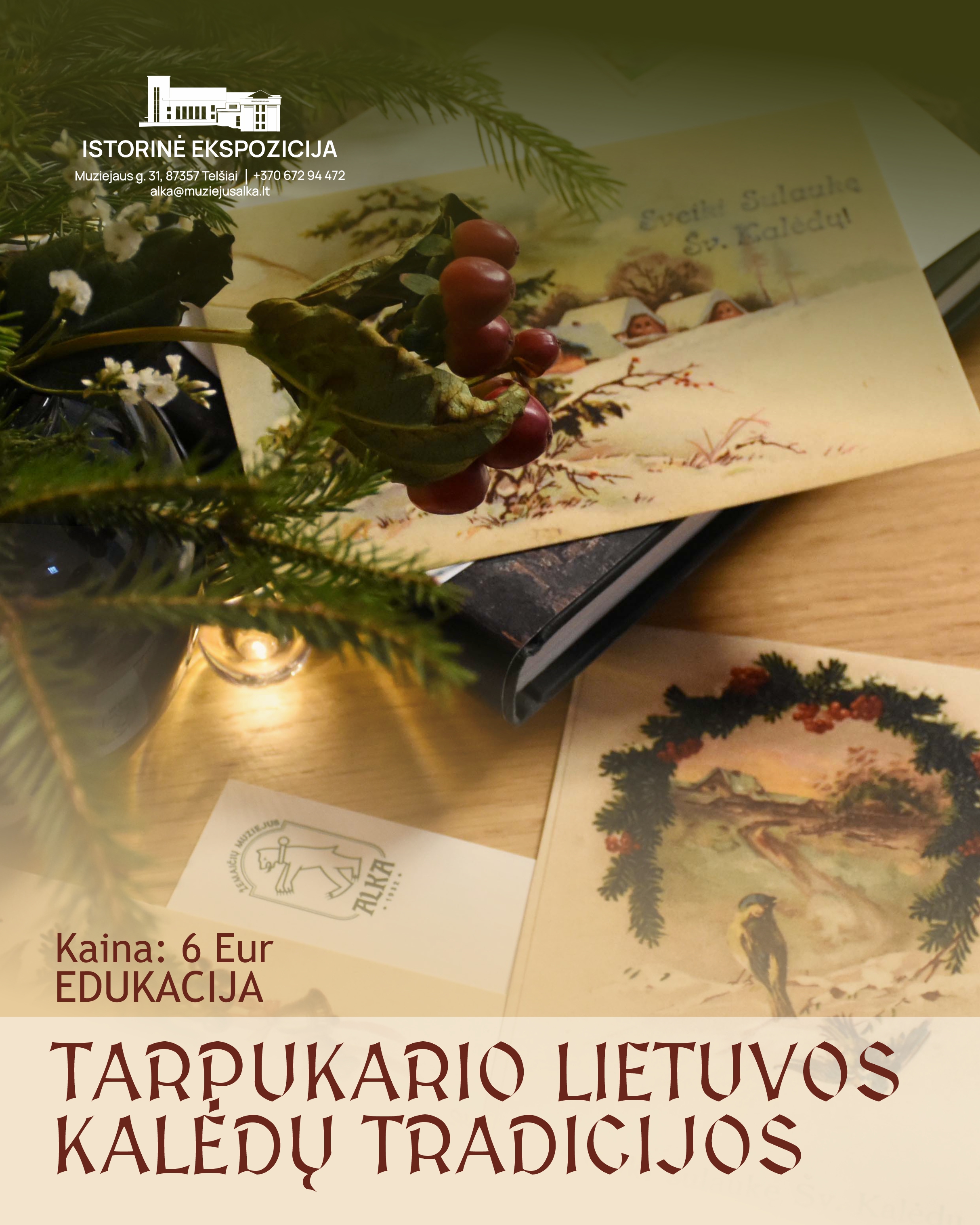 Edukacinė programa skirta supažindinti su tarpukario Lietuvos Kalėdų tradicijomis. Edukacijos metu dalyviai sužinos apie Kalėdų eglutės puošybos, Advento vainiko bei kalėdinių atvirlaiškių atsiradimo istoriją: apžiūrimi tarpukariu gaminti kalėdiniai atvirlaiškiai ir nagrinėjami juose rašyti kalėdiniai sveikinimai bei atvirlaiškio kelias nuo siuntėjo iki gavėjo. Dalyviai kurs atvirlaiškius pagal tarpukario pavyzdžius. Bus pateiktos priemonės atvirlaiškiams iškirpti, dekoruoti, sveikinimo tekstui parašyti, kūriniai bus įdėti į voką, užklijuoti pašto ženklai. Edukacijos dalyvių sukurti atvirlaiškiai bus išsiųsti jų nurodytais adresais, todėl prašome iš anksto pasiruošti gavėjo vardą, pavardę ir adresą.